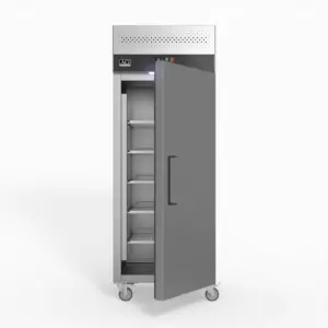 Offering 429L of storage capacity, this single-door upright freezer has adjustable wire shelves and comes equipped with castor wheels, so it can be easily moved into place.  It’s designed for busy commercial kitchens in pubs, bars, and restaurants and features self-closing doors, interior LEDs, a digital temperature controller, and an automated defrosting system. Made from high-quality stainless steel, the smart exterior is matched by trusted parts such as the Cubigel compressor and Carel electronics.