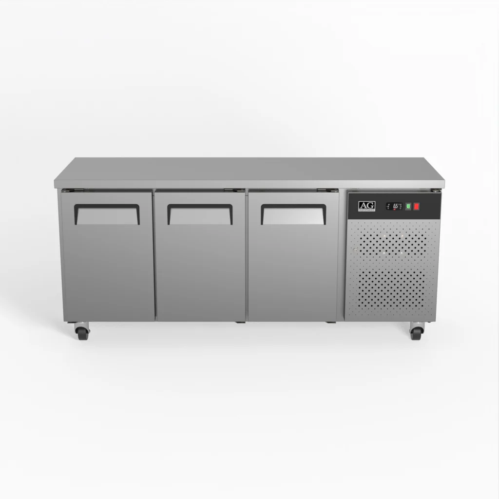 The heavy-duty stainless-steel worktop freezer conserves both space and energy and can be used as an under-bench or worktop. Fitted with heavy-duty doors, a Carel digital temperature controller, and a Cubigel compressor, this commercial unit is designed to function in environments of up to 43°C/65% humidity. Designed for restaurants, bars, clubs, and other hospitality venues, it features a unique centre-shelf connector so loose items do not fall through.