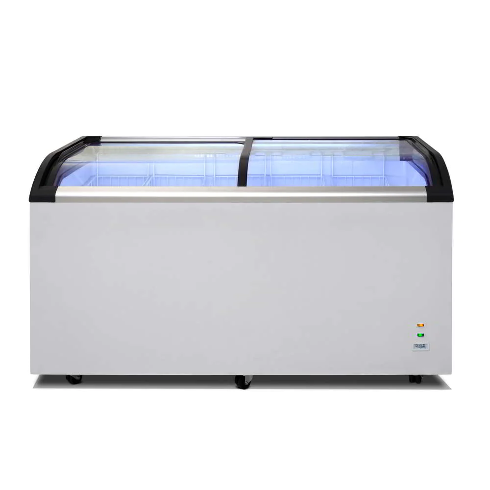 Do you need to display your frozen goods to your customers, while at the same time conserving space and costs with an economical display freezer option? AG Equipmentās SD-520Q chest freezer is perfect for a range of uses from ice creams at a milkbar, to frozen meat and vegetables in a deli or supermarket. With an attractive curved glass sliding door/lid, and caster wheels for easy relocation, our static-cooling chest freezer is right for you.