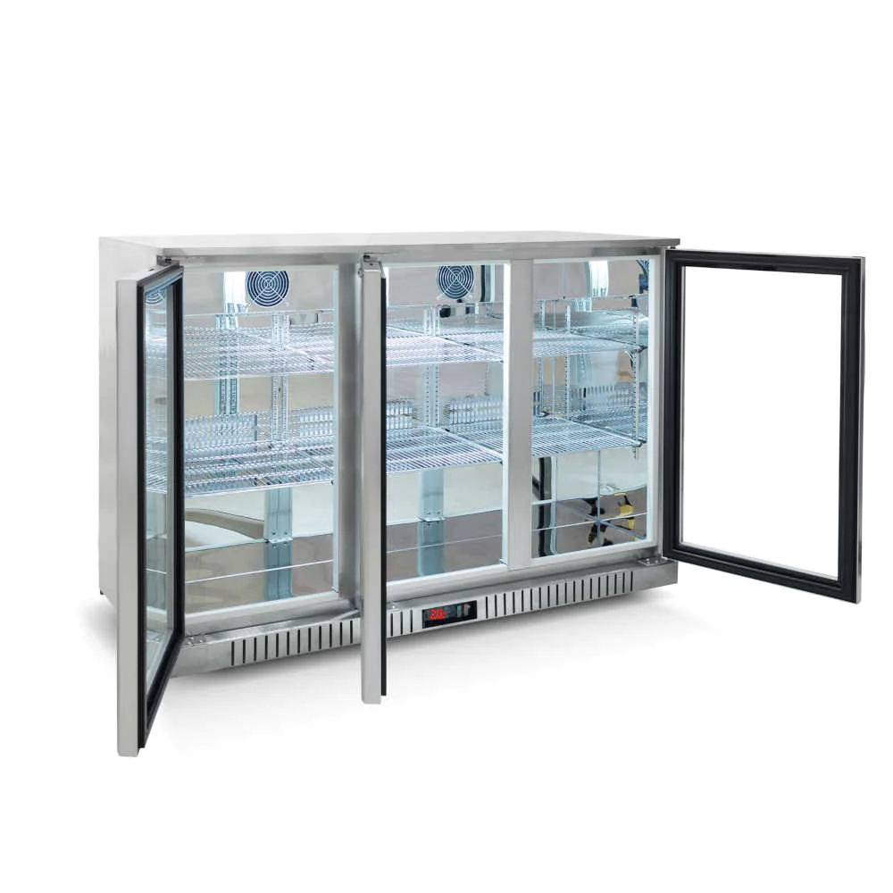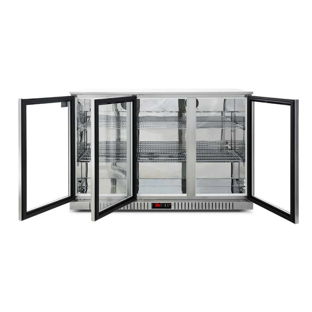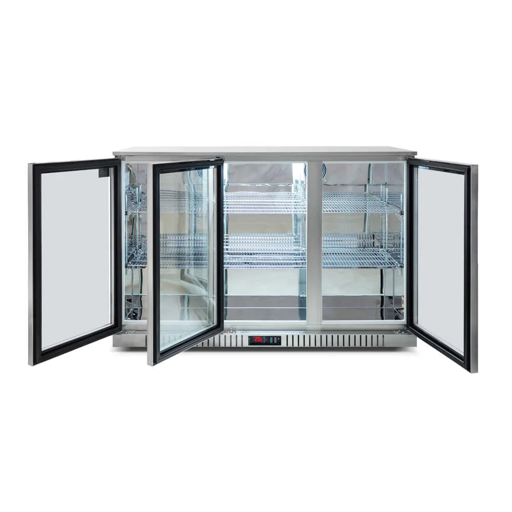 Our Triple door commercial bar refrigerator is ideal for Restaurants, Cafes, Bars, Clubs, and Pubs, and has even been installed in in-home alfresco around Australia. With two adjustable shelves, our refrigerator offers a full 320 litres of storage capacity.